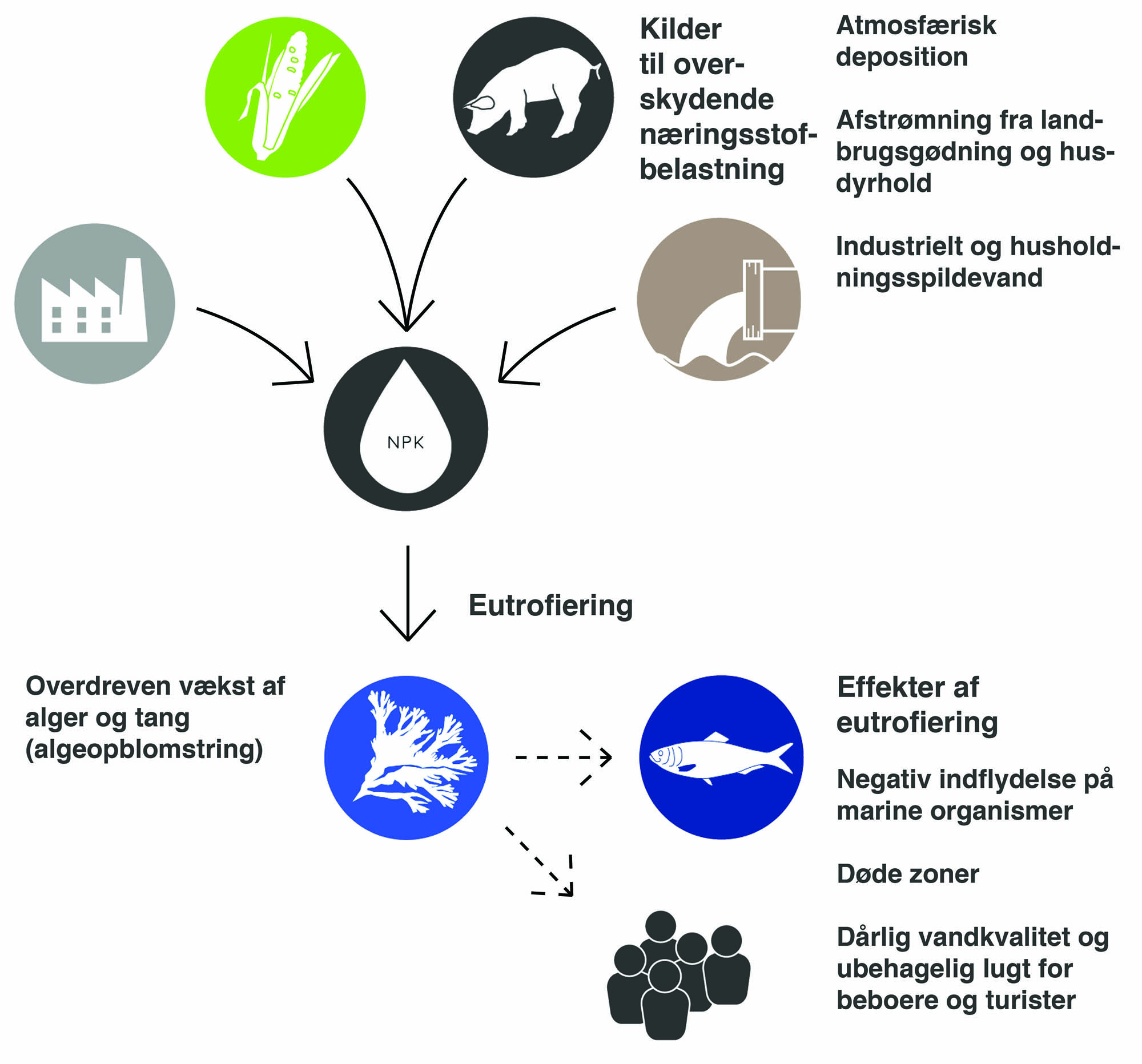 Østersøen er verdens største brakvandskrop – med en blanding af saltvand og ferskvand. Dets unikke biodiversitet er imidlertid truet af et fænomen kaldet eutrofiering. Eutrofiering skyldes hovedsageligt en overflod af næringsstofferne nitrogen og fosfor i vandet. Kilderne er mangfoldige – de kan komme fra atmosfæren, afstrømningsvand fra landbrugsområder samt spildevand, bare for at nævne nogle få. Den baltiske marine miljøbeskyttelseskommission – Helsinki-Kommissionen, kendt som HELCOM, har oprettet en hjemmeside, der giver detaljerede oplysninger om årsager og effekt ved eutrofiering. HELCOM-rapporten “State of the Baltic Sea” (engelsk) giver et godt overblik. (Link, der skal indsættes). Andre nyttige ressourcer kan også findes i vores linksamling “Yderligere information online”